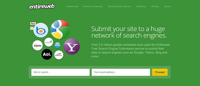 Entire web memberi anda cara untuk “submit” website ke berbagai mesin pencari yang populer. Sekitar 3,5 juta “profesional” sudah mengirimkan website mereka ke berbagai mesin pencari terpercaya. seperti google, bing, yahoo menggunakan “tools” ini. Entire web merupakan cara mudah dan cepat membantu anda dalam mencapai tujuan submission ke mesin pencari yang diinginkan.
