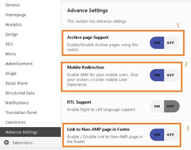 - Mengadakan atau menghilangkan “link to Non-AMP” ke halaman versi responsive website.