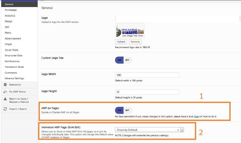Pada tab pengaturan home page menentukan apakah halaman beranda anda menampilkan versi AMP atau tidak.