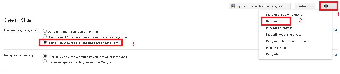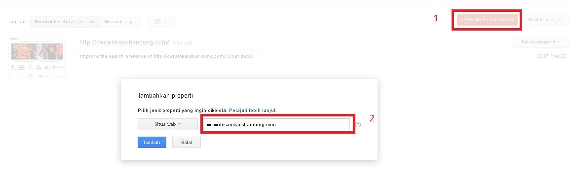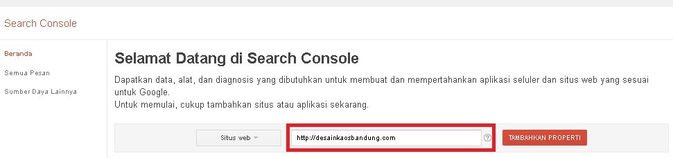 Anda sudah memasukan akun email anda, selanjutnya masukan domain website anda (copy paste saja dari adress bar). Perhatikan juga apakah versi www atau non www.